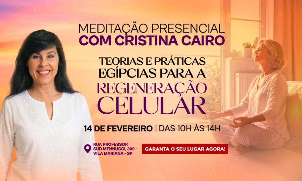 O Evento Meditação, teorias e práticas egípcias para a regeneração celular com Cristina Cairo é um encontro profundo e prático, criado para quem deseja aprender a meditar de verdade, de forma simples, consciente e aplicável no dia a dia — independentemente de já ter experiência ou nunca ter meditado antes.